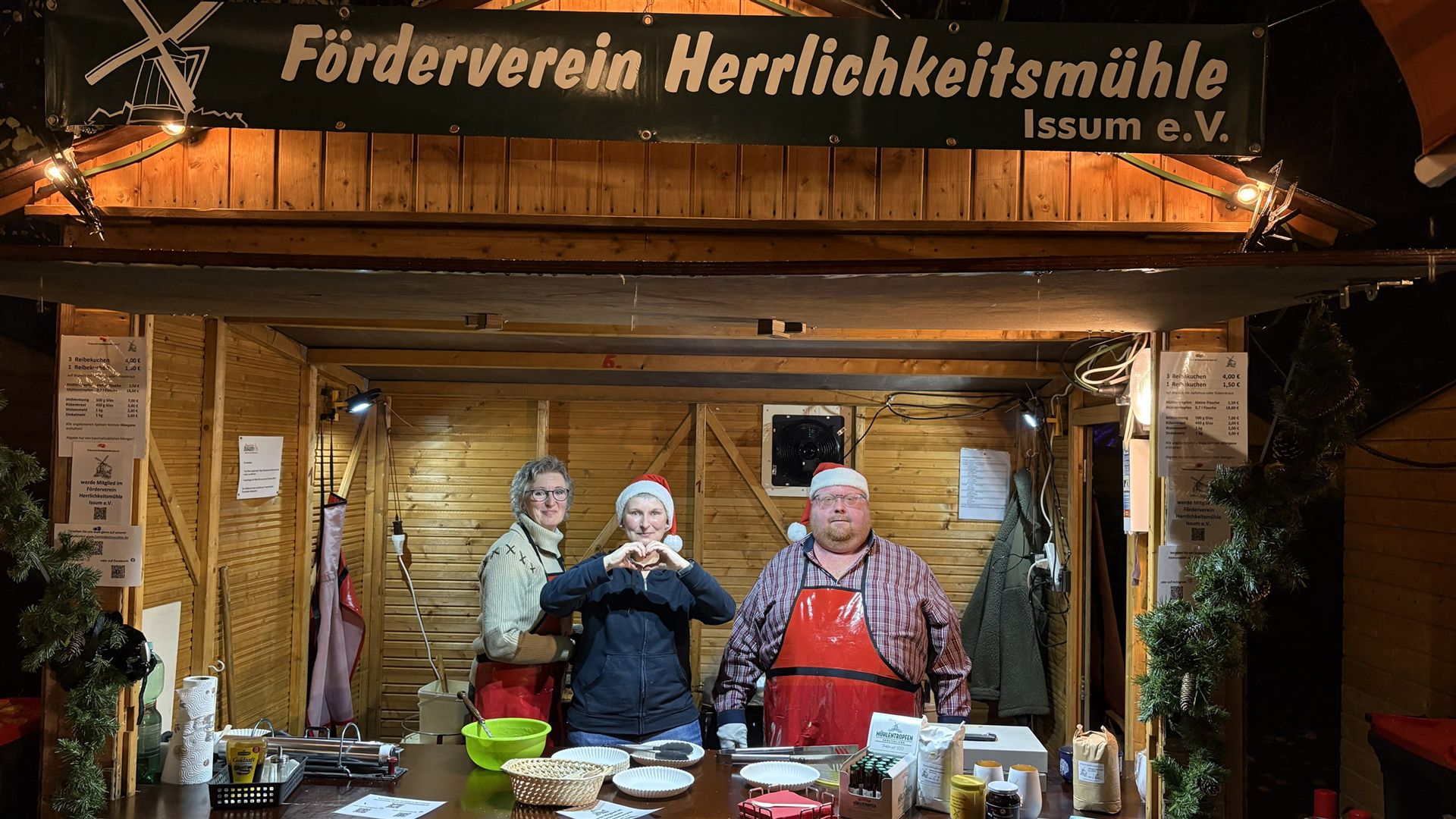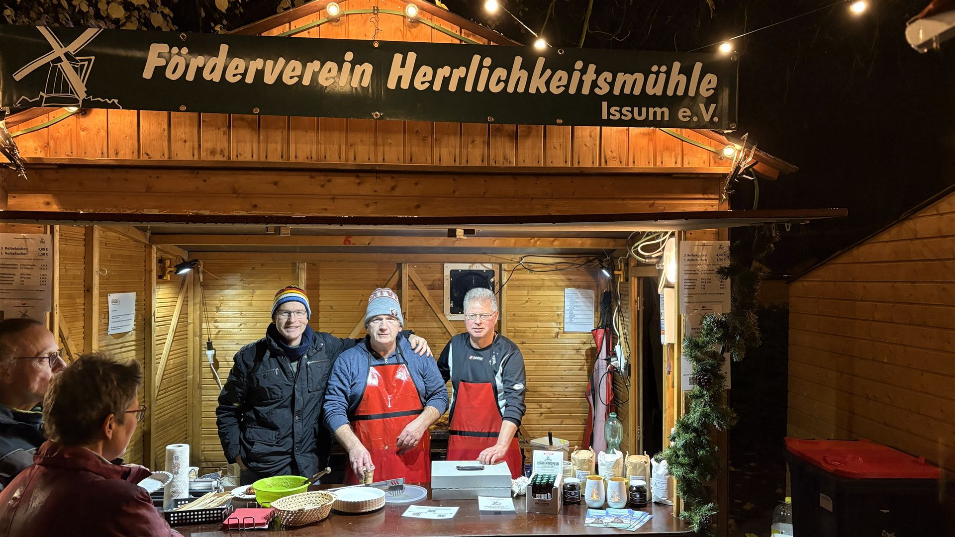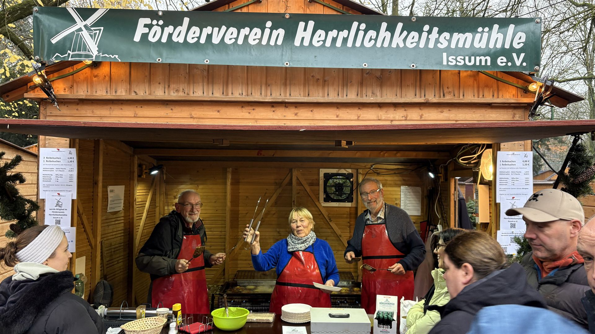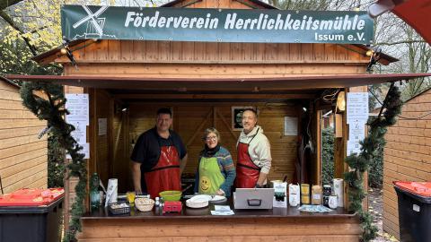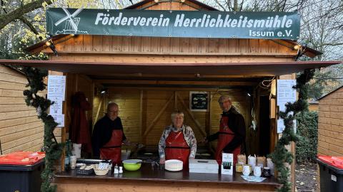 Wie auch in den letzten Jahren war der Förderverein Herrlichkeitsmühle Issum e.V. traditionell auf dem diesjährigen Weihnachtsmarkt in Issum vertreten und backte wieder leckere Reibekuchen.
