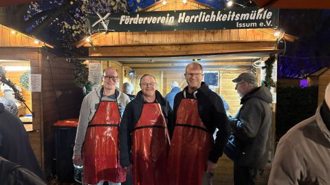 Wie auch in den letzten Jahren war der Förderverein Herrlichkeitsmühle Issum e.V. traditionell auf dem diesjährigen Weihnachtsmarkt in Issum vertreten und backte wieder leckere Reibekuchen.